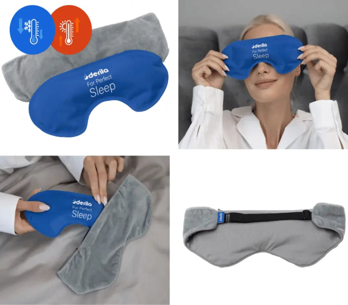 Relax and rejuvenate with the Derila 3-In-1 Eye Mask. Experience enhanced sleep through complete darkness, gentle pressure, and versatile hot or cold therapy for ultimate comfort.