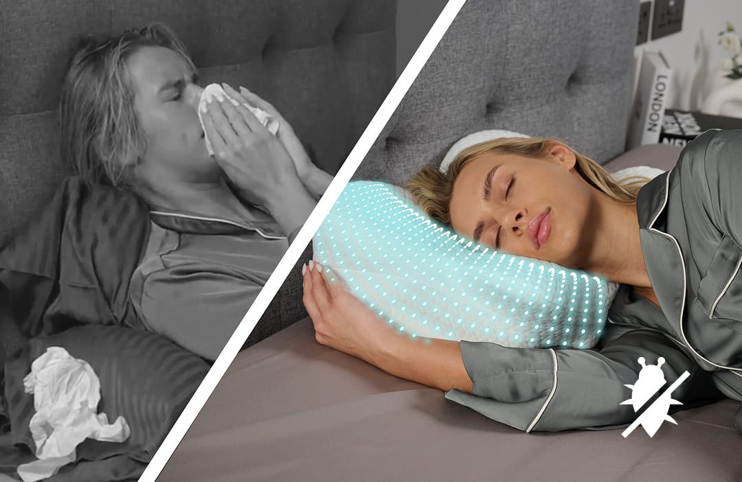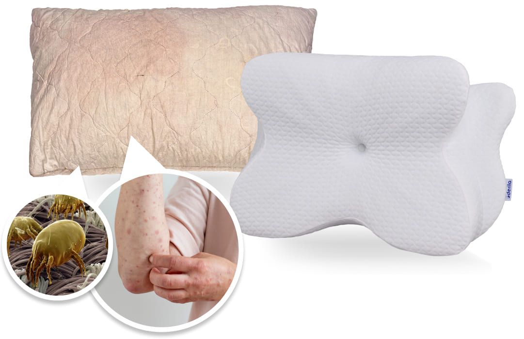 After just two years of use, up to 33.3% of your traditional pillow's weight is made up of dust mites, their droppings, dead skin cells, and bacteria. That's one-third of what you're sleeping on every night.