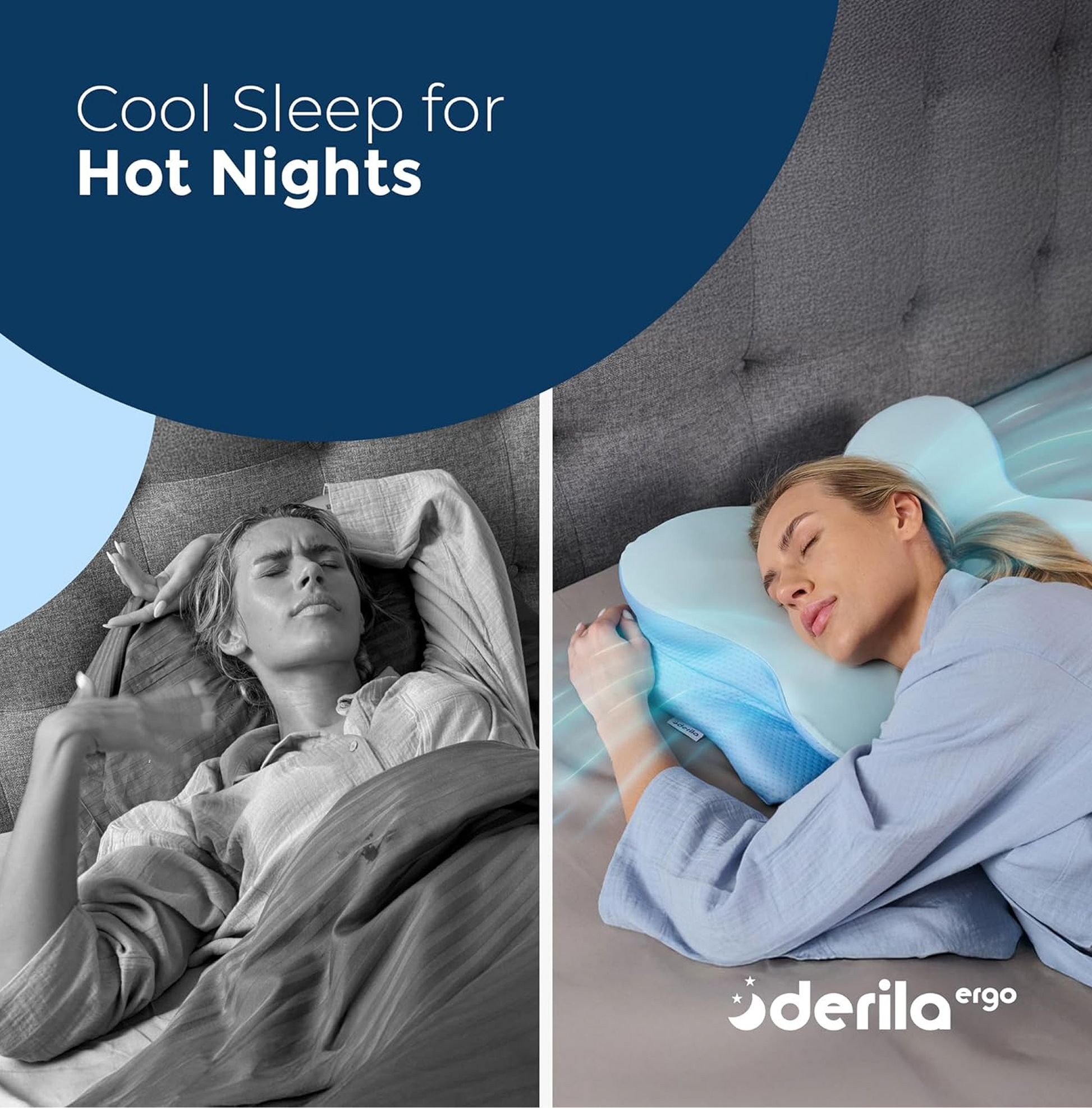 The Derila Ergo Cooling Pillowcase features cooling technology crafted from a specialized nylon and spandex blend to create a cooler, more comfortable sleep surface. This advanced fabric construction naturally promotes heat release and enhances air circulation through its unique material structure, resulting in a cool and breathable sleeping environment.