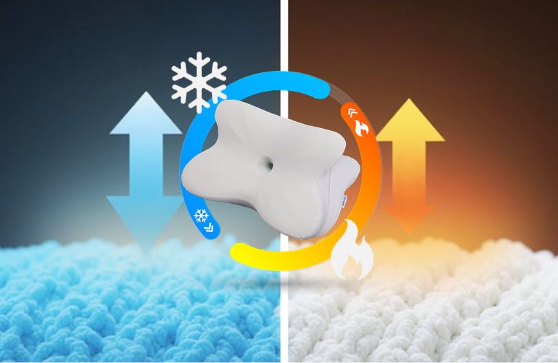 The Derila Ergo Thermo Pillowcase is crafted with Phase Change Material (PCM) that actively manages the temperature. PCM absorbs excess heat from your body when it’s warm and releases heat back when the temperature drops, maintaining a comfortable sleeping environment throughout the night.