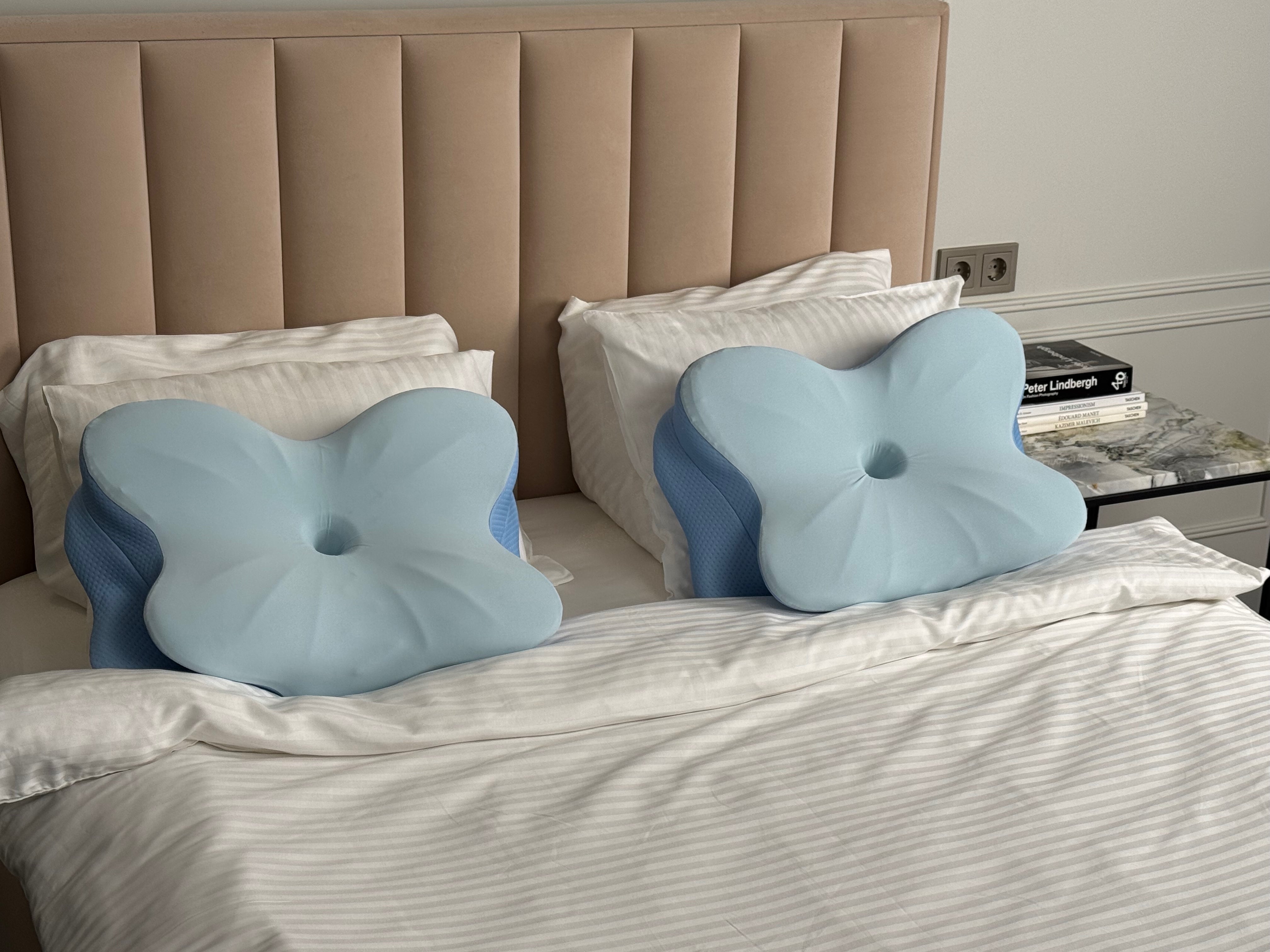 Unlike standard pillows, Derila features an ergonomic butterfly design with strategic support zones. The complex shape maintains proper spine alignment while providing targeted pressure relief for your neck, head, and shoulders. The high-density memory foam adapts to your unique shape while maintaining consistent support throughout the night.